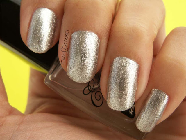 Jak widać procedura malowania jest identyczna jak zwykłym lakierem, a efekt jest bardzo, bardzo interesujący. Na zdjęciu niestety nie widać maleńkich złotych drobinek, które cudnie wyglądają w słońcu.
