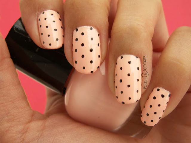 Paznokcie w kropeczki są według mnie najprostszą i jednocześnie najbardziej uroczą ozdobą kobiecych dłoni. Sam sposób malowania kropkowanego wzorku pokazywałam Wam już przy neonowym ombre. Jako podkład do dzisiejszego zdobienia wykorzystałam ten oto uroczy brzoskwiniowy lakier: