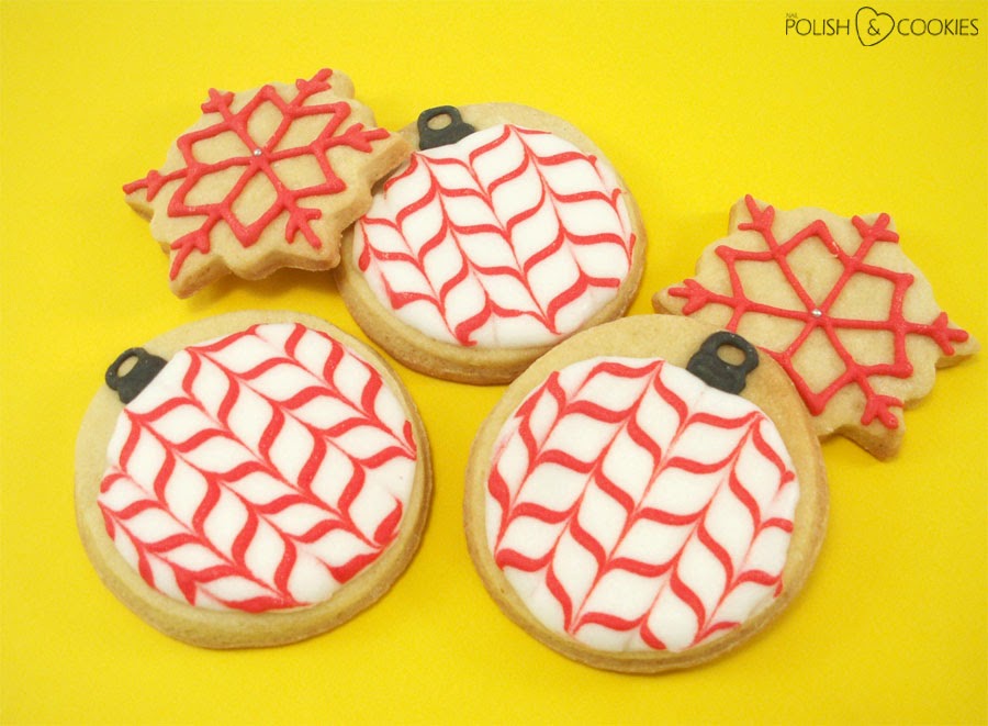 Kolejne świąteczne ciasteczka które chciałam Wam dziś zaprezentować to czerwono-białe bombki z prawdziwie hipnotyzującym wzorkiem. Według mnie wyglądają mega ciekawie, a w wykonaniu są na prawdę proste – na pewno każdy z Was dałby sobie z nimi radę!