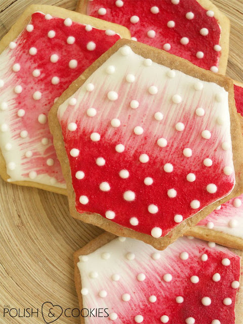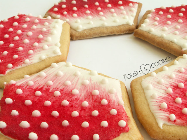 Kiedy wszystko dobrze wyschło, cianką końcówką zrobiłam białe kropeczki na całej powierzchni ciasteczek. Gotowe ciasteczka można podziwiać poniżej: