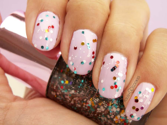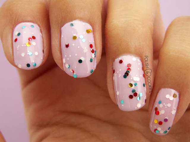 Jeżeli nie macie dostępu do tego typu lakieru a macie tylko brokat w proszku lub zbędne mini-cekiny, zawsze możecie domowym sposobem sobie takowy stworzyć – wystarczy przecież wsypać je do buteleczki z lakierem bezbarwnym, dobrze wymieszać i gotowe – można od razu nakładać je na paznokcie. Moje wyglądają dziś troche jak pokryte karnawałowym konfetti, nie uważacie?