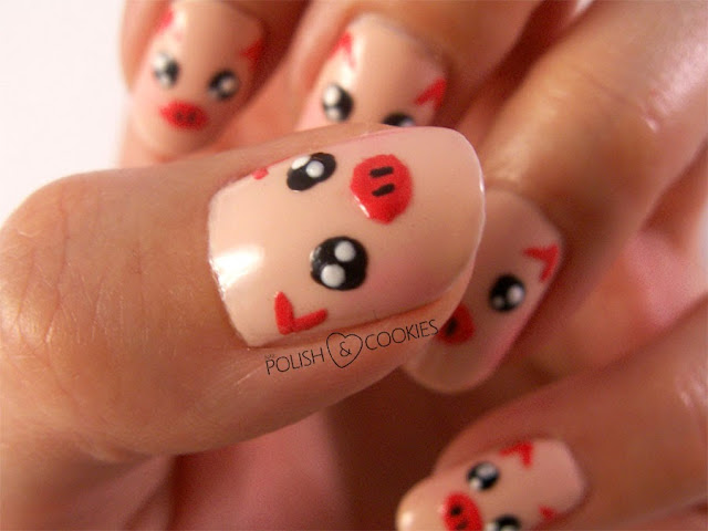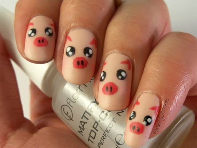 Po ostatnich PROSIACZKOWYCH CIASTECZKACH dość długo nie mogłam się zdecydować jak do takiego tematu podejść na paznokciach. Najpierw chciałam zrobić świnki podobne do mojej całkiem niedawnej uroczej PANDY, jednak kiedy zobaczyłam TO zdjęcie wiedziałam, że to ten pomysł którego szukam. Oczywiście nie wyszło mi tak idealnie jak pierwowzór, jednak mialam wielką frajdę malując takie oto świnki.