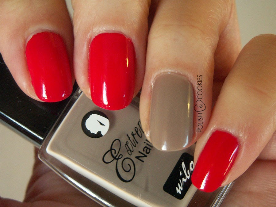 Dziś miałam nieco więcej czasu, więc postanowiłam odtworzyć wigilijny look i nieco go ulepszyć. Jako podkładu użyłam czerwonego lakieru nr 3160 z Miss Sporty, dodatkowo serdeczny palec pomalowałam szarością z Wibo nr 65.